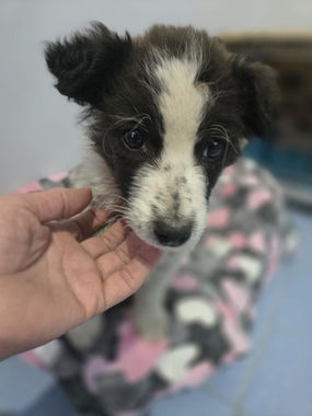 Unsere Tierschützerin sicherte ihn, er wurde tierärztlich gecheckt und tobt nun mit anderen Welpen im Shelter umher.